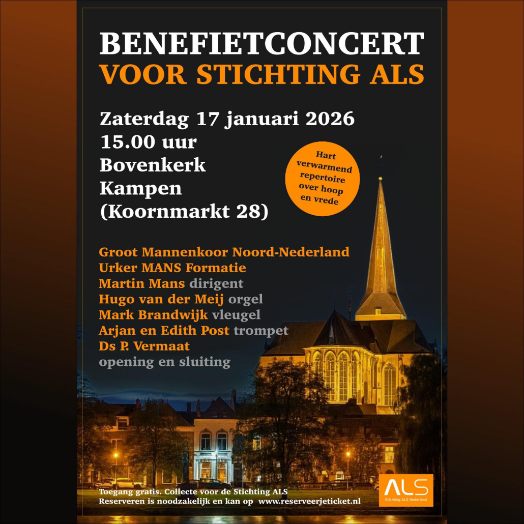 Collecte voor Stichting ALS – Toegang gratis. Reserveren noodzakelijk op www.reserveerjeticket.nl