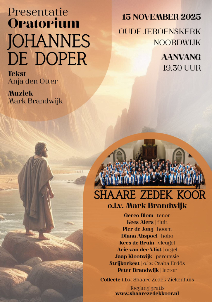 Presentatie van het nieuwe oratorium Johannes de Doper van Mark Brandwijk, op teksten van Anja den Otter.