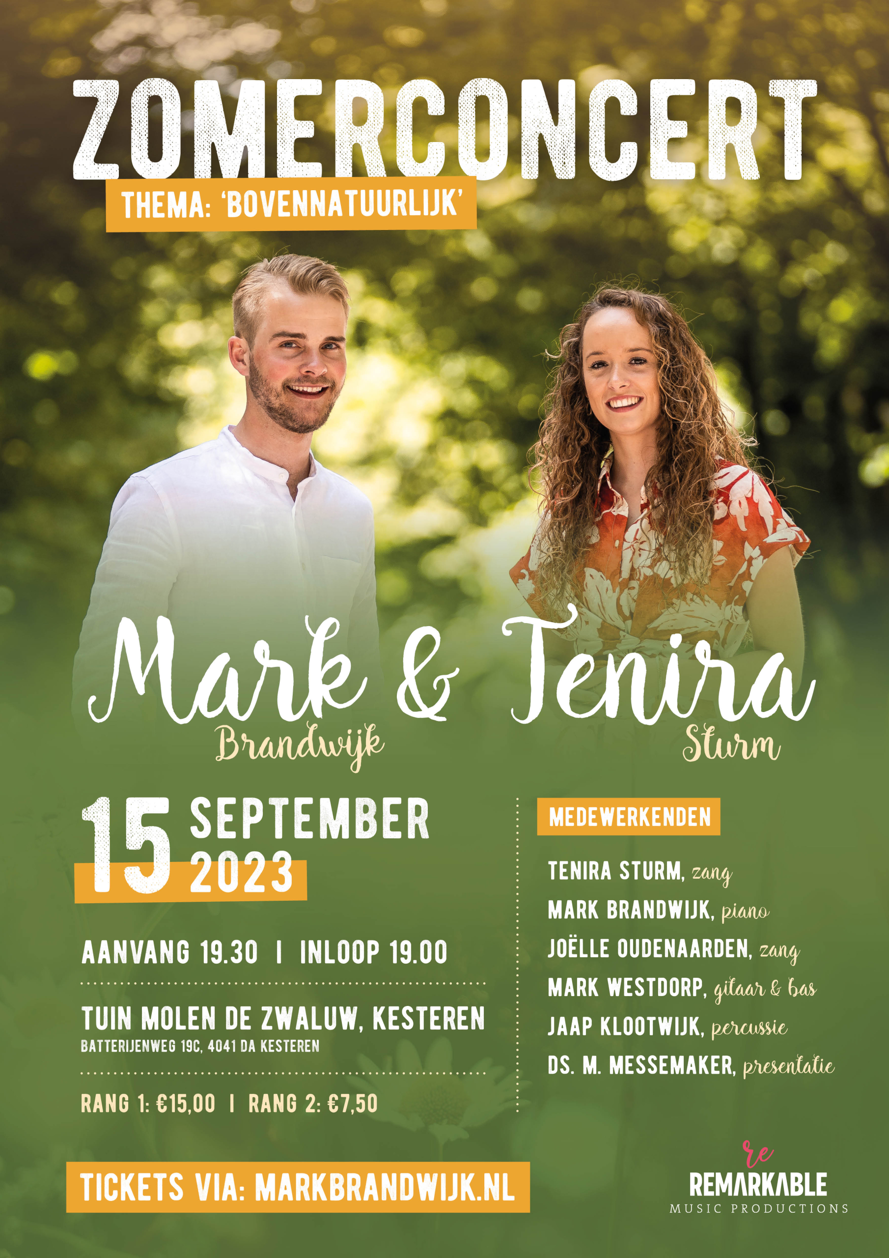 Molen De Zwaluw Kesteren Batterijenweg 19C 4041 DA'BOVENNATUURLIJK'! Een concert met een bijzonder thema, vraagt om een bijzondere locatie. Vanuit de tuin van Molen De Zwaluw in Kesteren brengen we een prachtig programma van (samen)zang, muziek en ontmoeting. We zingen over God en de natuur, maar ook over Gods bovennatuurlijke kracht en wijsheid. Medewerking verlenen onze vaste 'bandleden' Jaap Klootwijk, percussie, en Mark […]