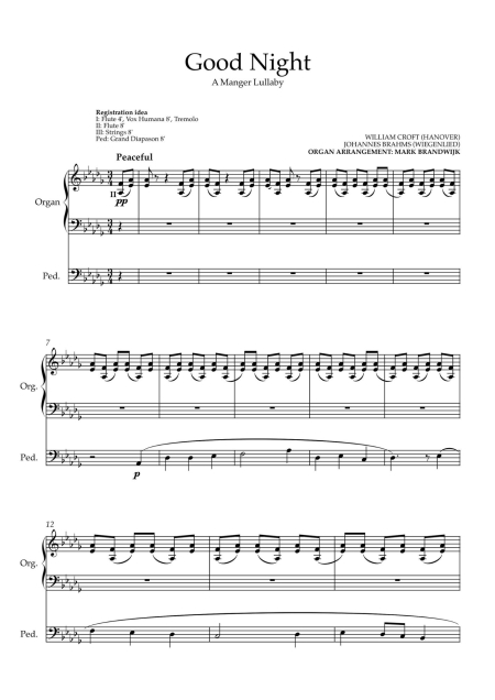 Deze sfeervolle orgelbewerking voor Kerst van Mark Brandwijk combineert de schitterende Hanover-melodie van onder andere het bekende Kerstlied ‘In Bethlehem’s Stal’ met het Wiegenlied ‘Guten Abend, gut’ Nacht’ op.49 van Johannes Brahms. Een unieke combinatie, die verrassend goed werkt!
